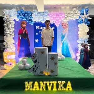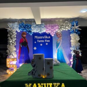 What we offer:- ✅A ring stand ✅Happy birthday, neon light ✅2 Feet LED number light (single/Double digit) ✅Arch of 180-200 balloons, as shown in the reference picture ✅3-4 pcs palm leaves , 5-6 artificial flower bunches ✅2 plain Black cake drums ✅Some balloon bunches on ceiling/side walls with ribbons as per choice ✅Home Delivery & Setup – we come to your…