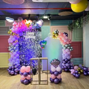 What we offer:- 100-110 Balloons Decoration (No Helium) – beautifully arranged in a dreamy pastel mermaid theme for a magical and colorful birthday setup. Includes a Pastel Mermaid Balloon Arch with a cute Mermaid Theme Backdrop. Home Delivery & Setup – we come to your location. Safety First – decorator will wear a mask. All Taxes Included. Professional Service –…