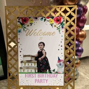 What we offer:- ✅A ring stand ✅A theme flex with a customized Guitar theme print on it ✅Semi Arch of 180-200 balloons as shown in the reference picture ✅1 square cake stand with theme print on it ✅1 musical note foil on pillar ✅2 LED power can lights ✅Home Delivery & Setup – we come to your location at the…