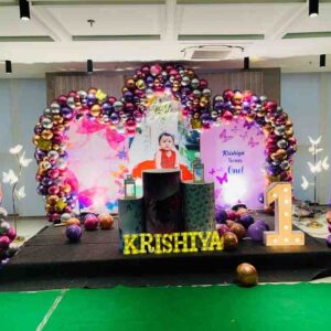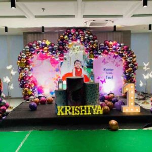 What we offer:- ✅A ring stand ✅Happy birthday, neon light ✅2 Feet LED number light (single/Double digit) ✅Arch of 180-200 balloons, as shown in the reference picture ✅3-4 pcs palm leaves , 5-6 artificial flower bunches ✅2 plain Black cake drums ✅Some balloon bunches on ceiling/side walls with ribbons as per choice ✅Home Delivery & Setup – we come to your…