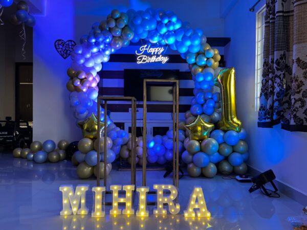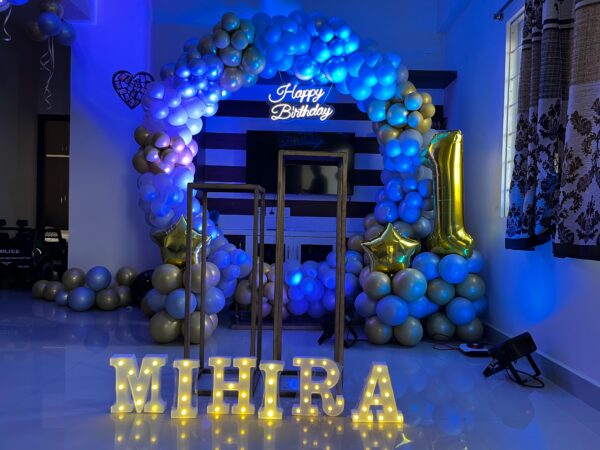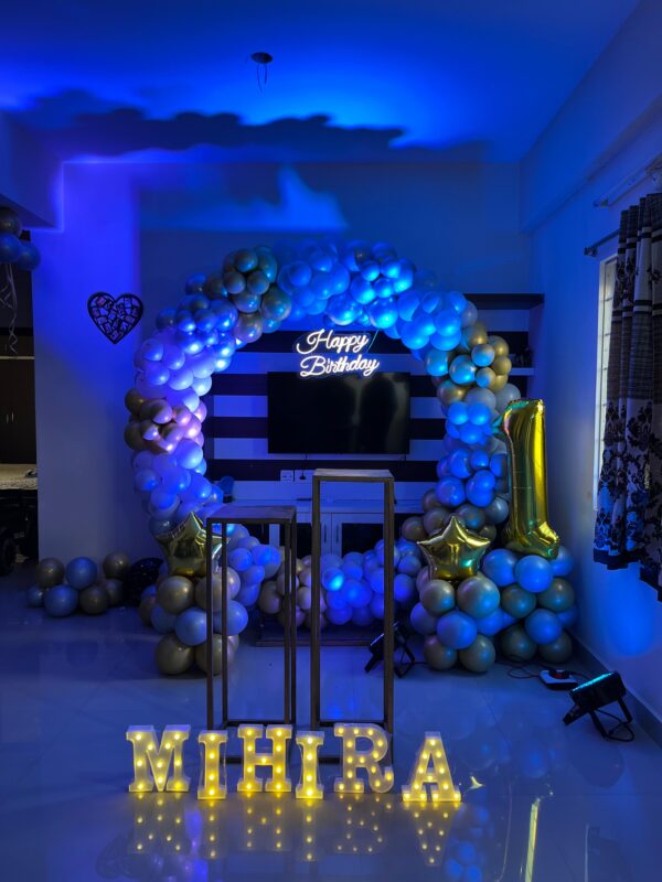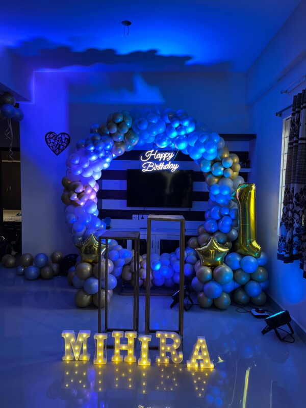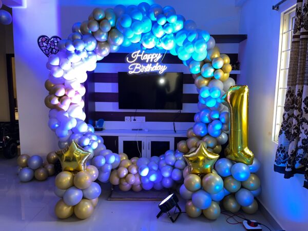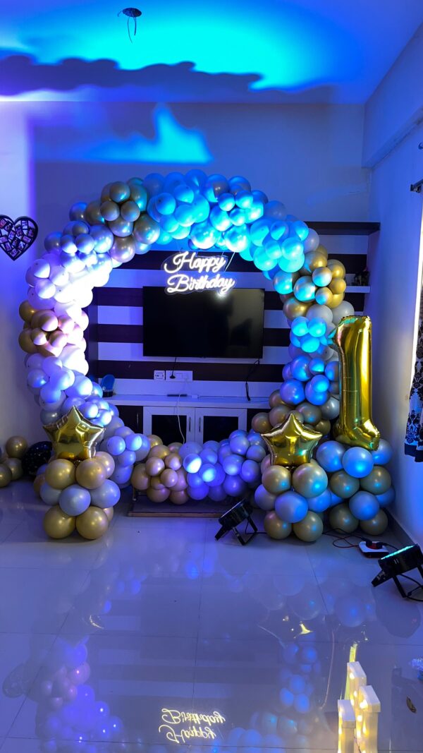 - 10 balloons with ribbons will be fixed to the ceiling. The rest will be arranged in bunches or left floating on the floor as per your choice.