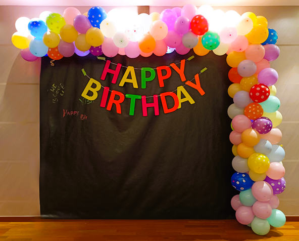 - ✅ Few balloons on side walls/ceiling with ribbon