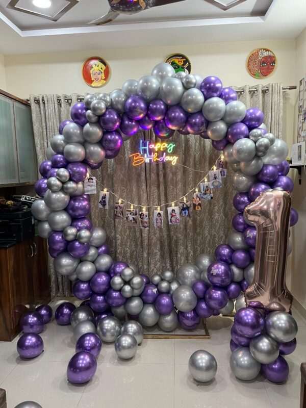 Add 200 Latex and Chrome Balloons' gate for two door entrance using wall as a support