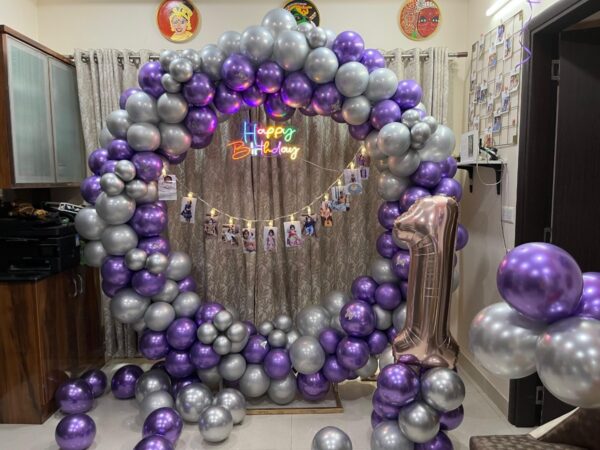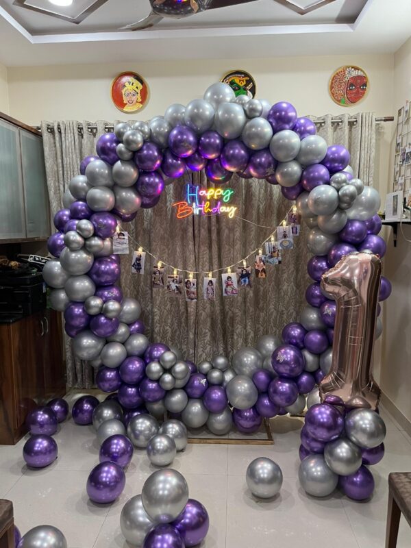 - 80-100 balloons used for Balloons garland in backdrop decor on wall.