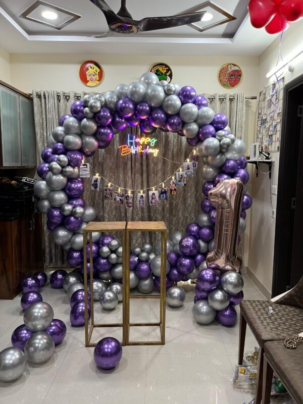 - 10 balloons with ribbons will be fixed to the ceiling. The rest will be arranged in bunches or left floating on the floor as per your choice.