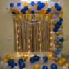 Blue & Gold Fringe Backdrop Decoration with Warm LED Lights