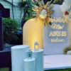 Party Addiction will decorate your space with 70-100 balloons and ribbons in an elegant white and rose gold theme, along with a balloon arch and stylish backdrop to create a stunning party atmosphere.