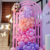 Party Addiction will decorate your space with 150-200 balloons and ribbons in a beautiful pink and purple theme, along with a balloon arrangement and themed backdrop to create a joyful and adorable first birthday party atmosphere.