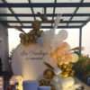- The decoration theme includes a mix of gold, white, and black balloons for a stylish and elegant look.