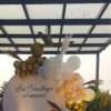- Luxury Balloon Garland: A stunning balloon garland made with gold, white, and pink balloons is designed along one side of the backdrop to add depth, style, and a rich party atmosphere.