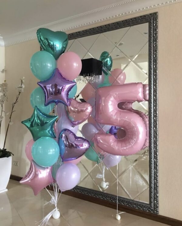 - 10 balloons with ribbons will be fixed to the ceiling. The rest will be arranged in bunches or left floating on the floor as per your choice.