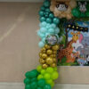 - 40–50 balloons with ribbons will be attached to the ceiling. The rest will be arranged around the jungle adventure balloon arch and birthday backdrop to create a vibrant decoration.