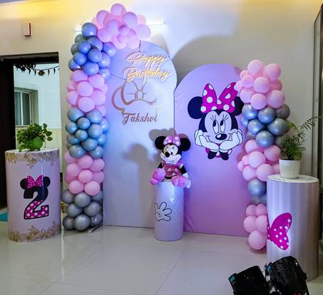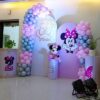 - Cylindrical pillars display a big number 2, emphasizing the birthday milestone, along with Minnie Mouse graphics.