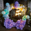 Party Addiction will decorate your space with a beautiful circular pastel balloon arch made with 100–150 balloons with ribbons in soft pastel shades like pink, lavender, mint, and white, enhanced with elegant gold accents and a glowing neon birthday sign to create a trendy and Instagram-worthy party setup.
