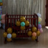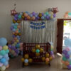 - 100–150 Balloons Decoration (No Helium) – beautifully arranged in soft pastel shades like pink, lavender, mint, and white to create a stunning Pastel Garland Silver Fringe Backdrop with Star Accents featuring a shiny silver fringe curtain backdrop, pastel balloon garland, and stylish star accents, all tied with ribbons.