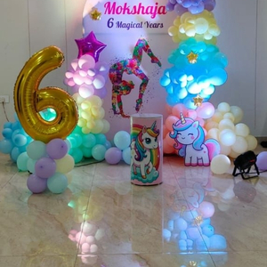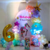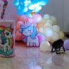 - 50-70 Balloons Decoration (No Helium) – beautifully arranged with ribbons in a dreamy pastel unicorn and gymnast theme to create a magical birthday setup.