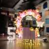 golden and white balloons, and an eye-catching “HAPPY BIRTHDAY” banner.