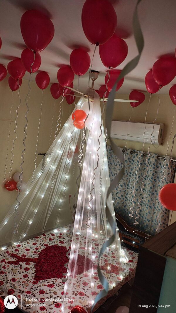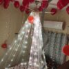 - 40-50 balloons with ribbons will be fixed to the ceiling. The rest will be left floating on the floor as per your choice.