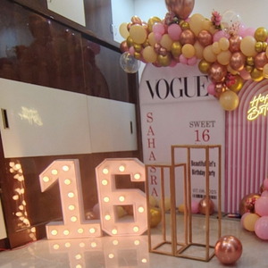 - Includes a Rose Gold & Pink Balloon Arrangement with an elegant Vogue Theme Backdrop.