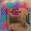 - 40–50 balloons with ribbons will be attached to the ceiling. The rest will be arranged around the pastel balloon arch and shimmering sequin backdrop to create a beautiful decoration.