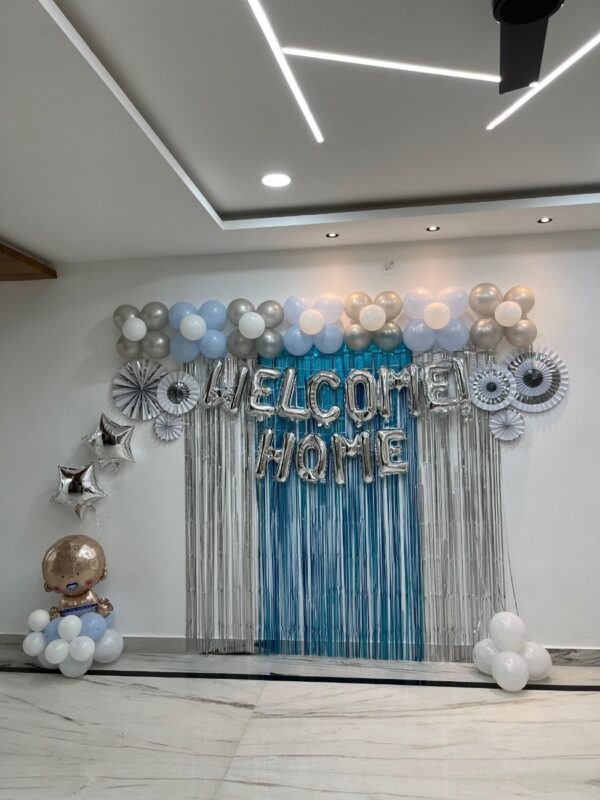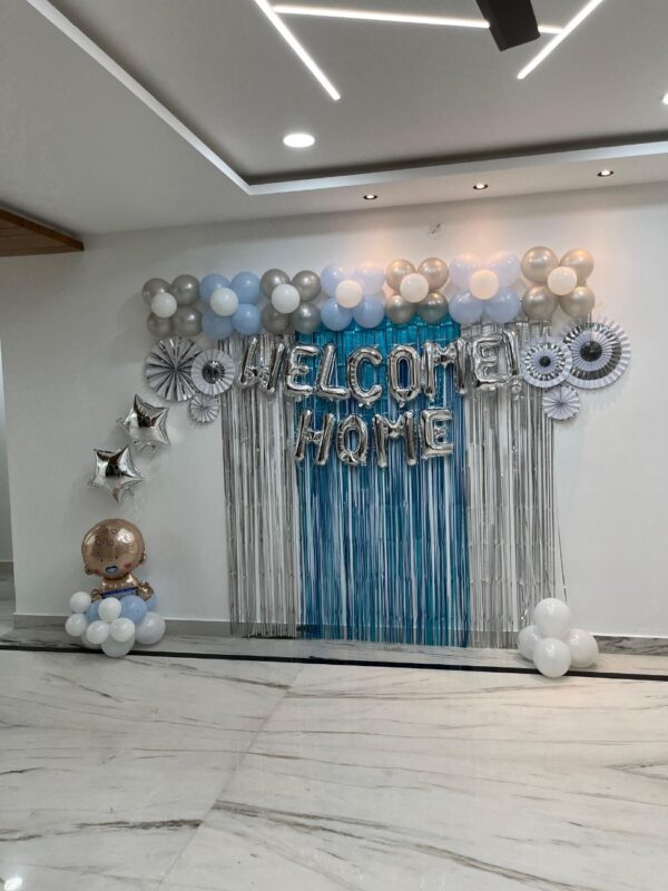 - 10 balloons with ribbons will be fixed to the ceiling. The rest will be arranged in bunches or left floating on the floor as per your choice.