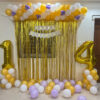 - 40-50 Balloons Decoration (No Helium) – beautifully tied with ribbons in an elegant white and gold color combination for a classy birthday setup.