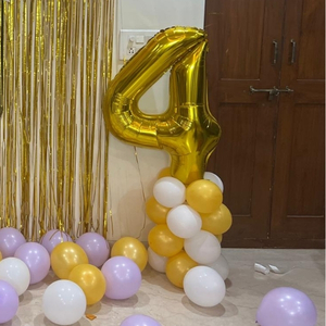 Party Addiction will decorate your room with 100–150 balloons and ribbons in a stunning white and gold color theme, giving your party a luxurious and festive look.
