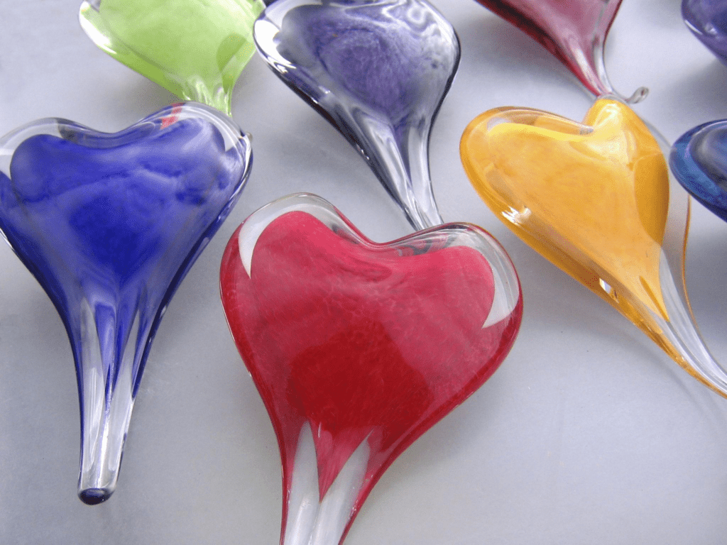 Soft glass hearts in pastel shades create a sweet, gentle atmosphere.